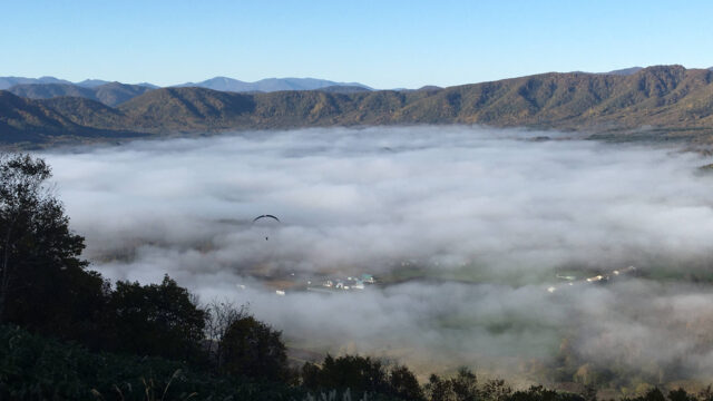 キロロリゾートからほど近い赤井川村カルデラ盆地内で、エンジンを使わないパラグライダーによる空中散歩を楽しめます。