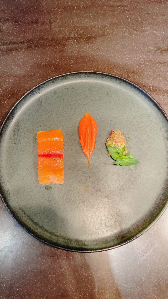 - 桜鱒のミキュイ 京人参と清見オレンジのソース