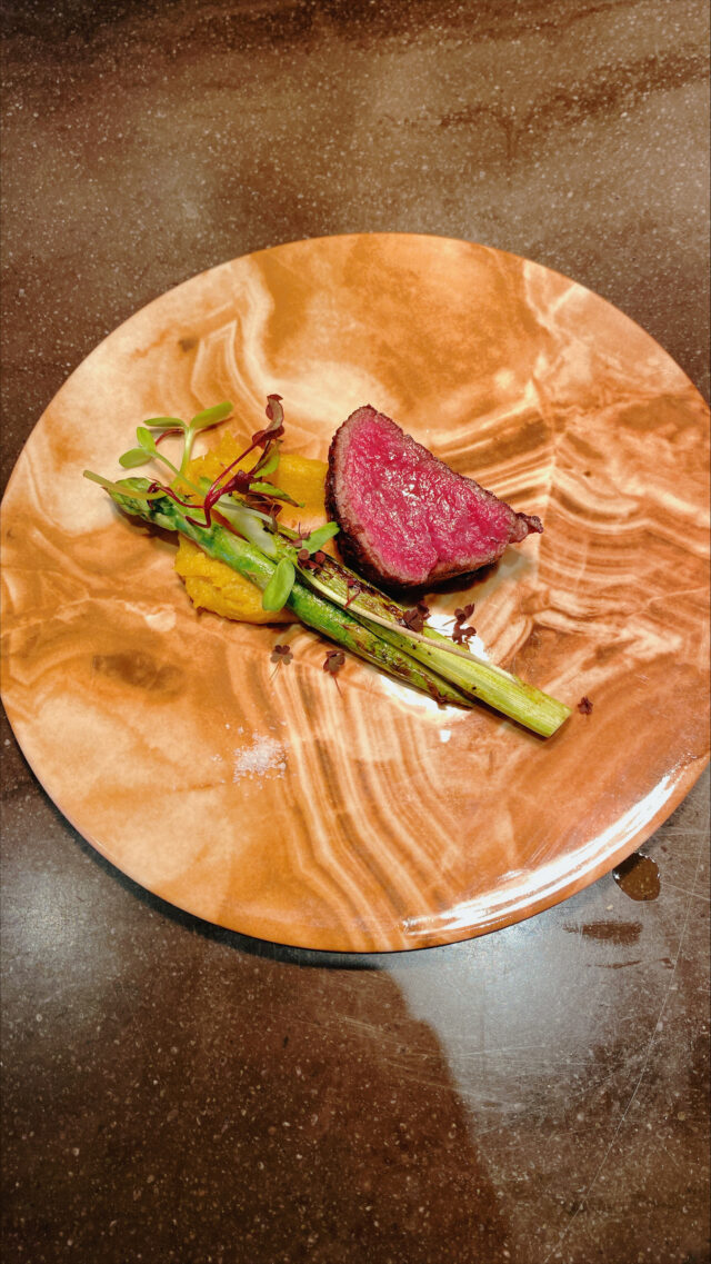 - 白老牛シャトーブリアンとアスパラガスの炭火焼き